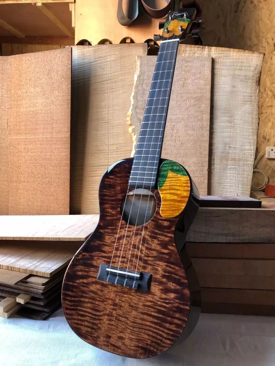 大芒果的琴头和琴身的装饰,